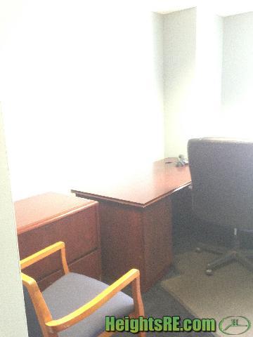This office suit has a desk, deskchair, visitor seating and includes phone and internet as part of the executive suite experience. Amenities included: Phone, Internet, Office Furniture, a shared executive conference room, and a shared kitchenette.